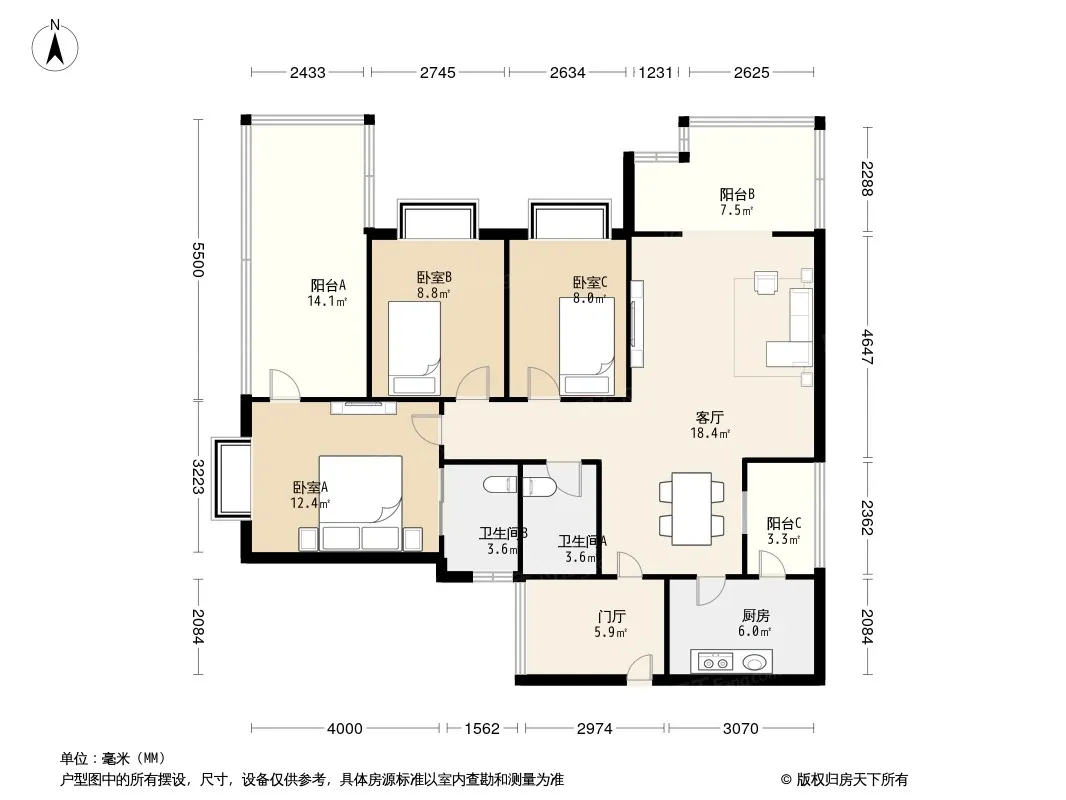 户型齐全,主打户型方正,明卫,明厨三居