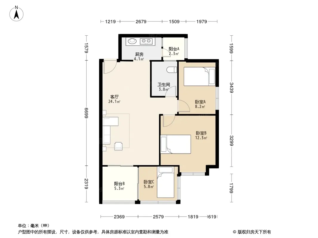 户型齐全,主打户型方正,明卫,明厨,客厅朝南三居