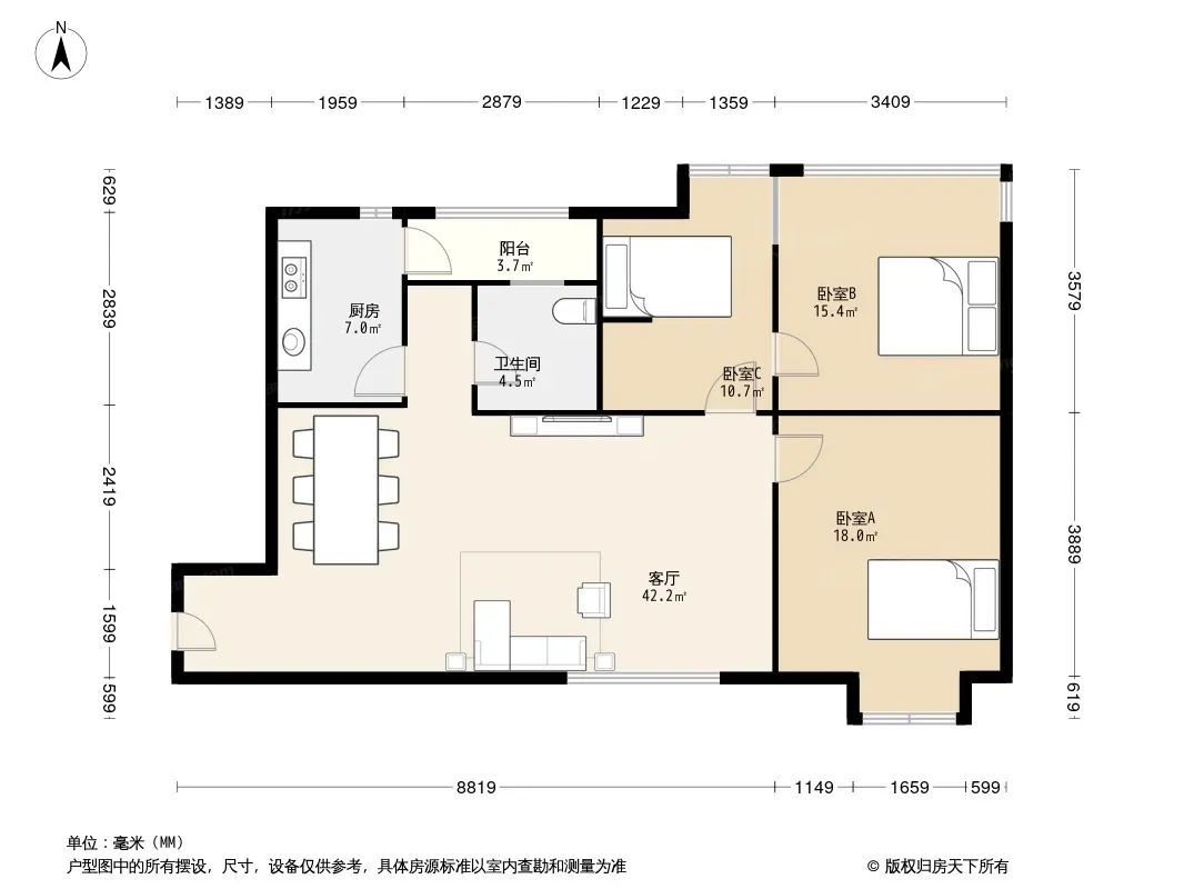 户型齐全,主打户型方正,明卫,明厨,客厅朝南三居