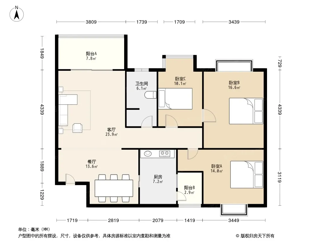 户型齐全,主打户型方正,明卫,双阳台三居