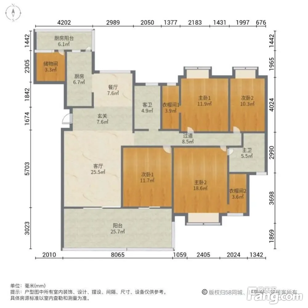 户型齐全,主打明卫,独立衣帽间,客厅朝南,双阳台,主卧朝南四居
