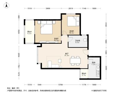 万基金蓝湾 2室2厅 东南