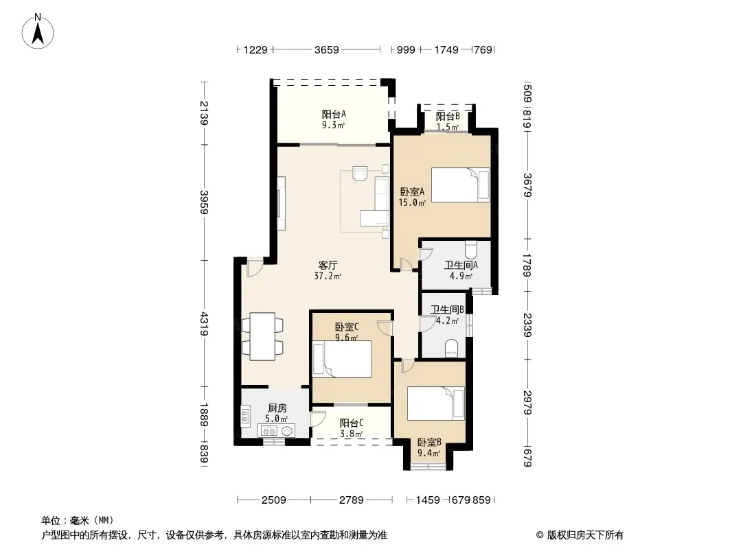 户型齐全,主打明卫,双阳台三居
