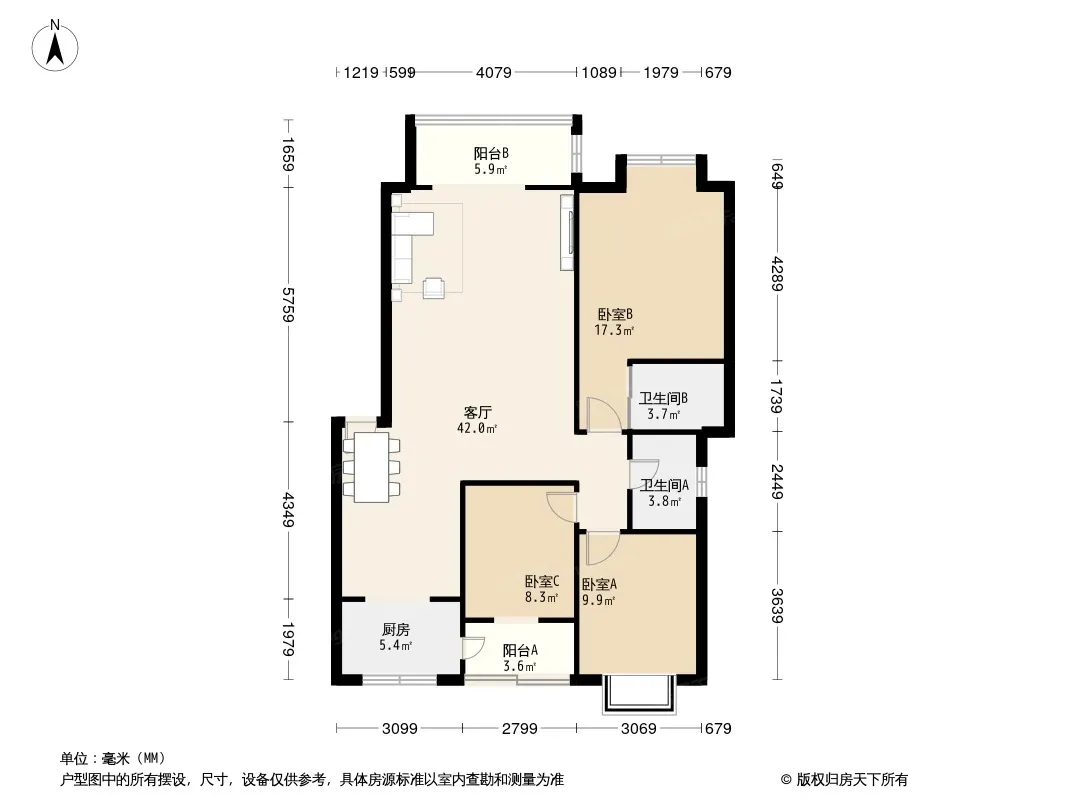 户型齐全,主打户型方正,明厨,明卫三居