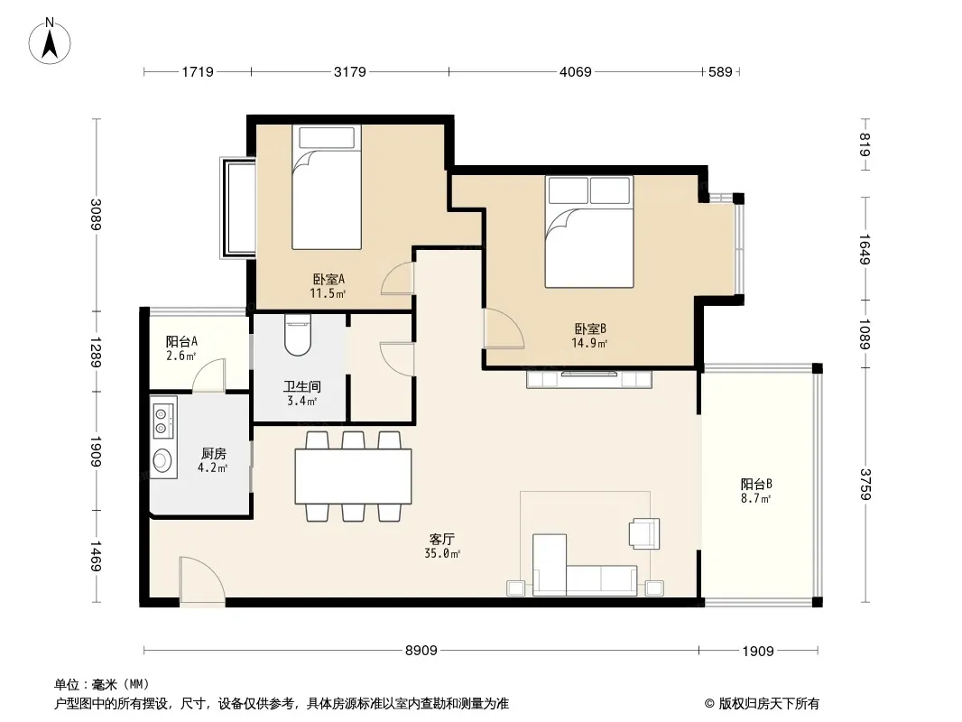 户型齐全,主打户型方正,明厨,明卫,主卧朝南二居