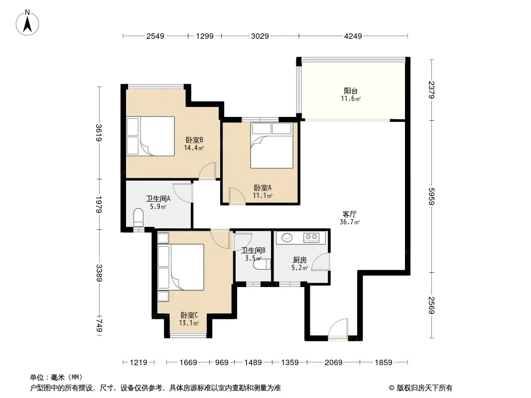 华银美景 3室2厅 北 南
