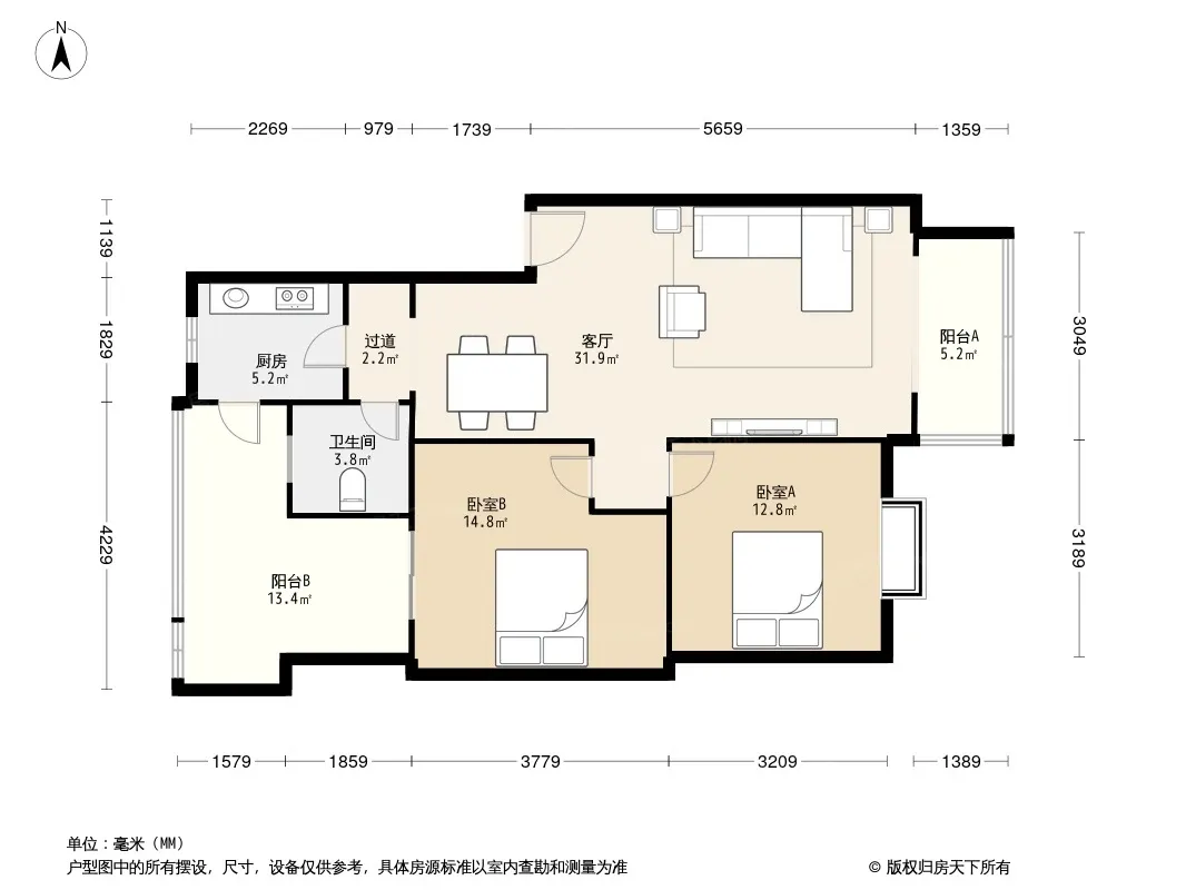 华银美景 2室2厅 南