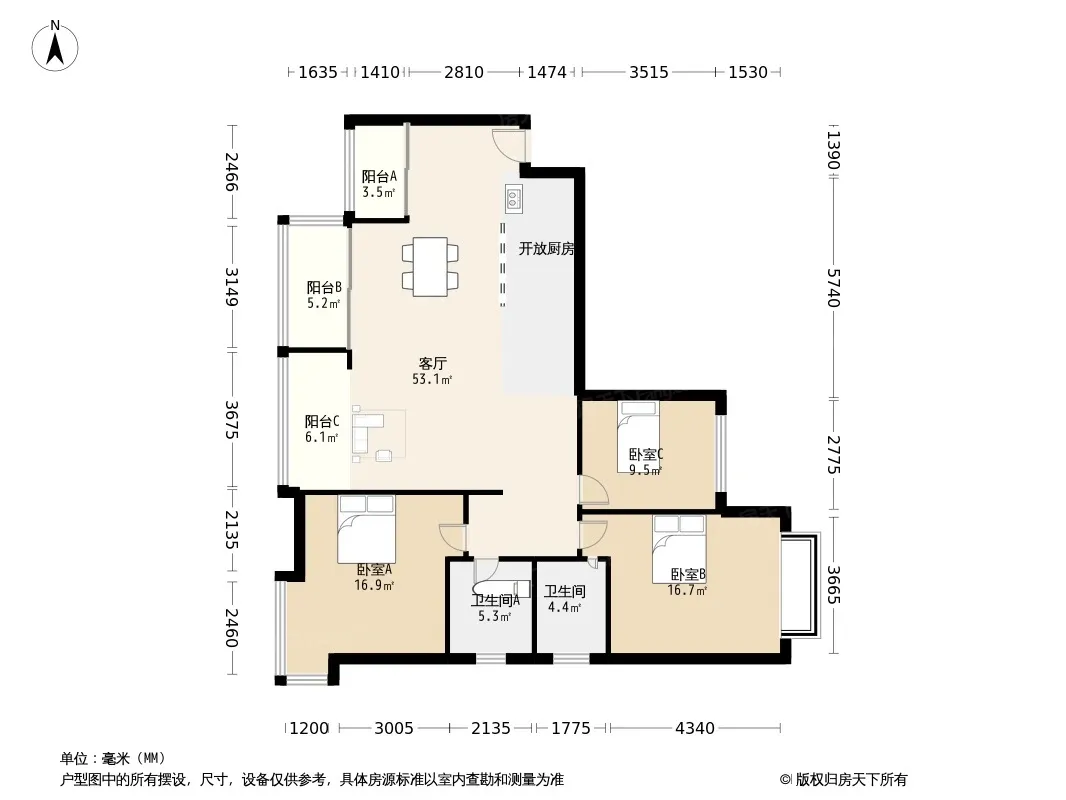 *获取完整户型报告,同时会有免费语音讲解服务