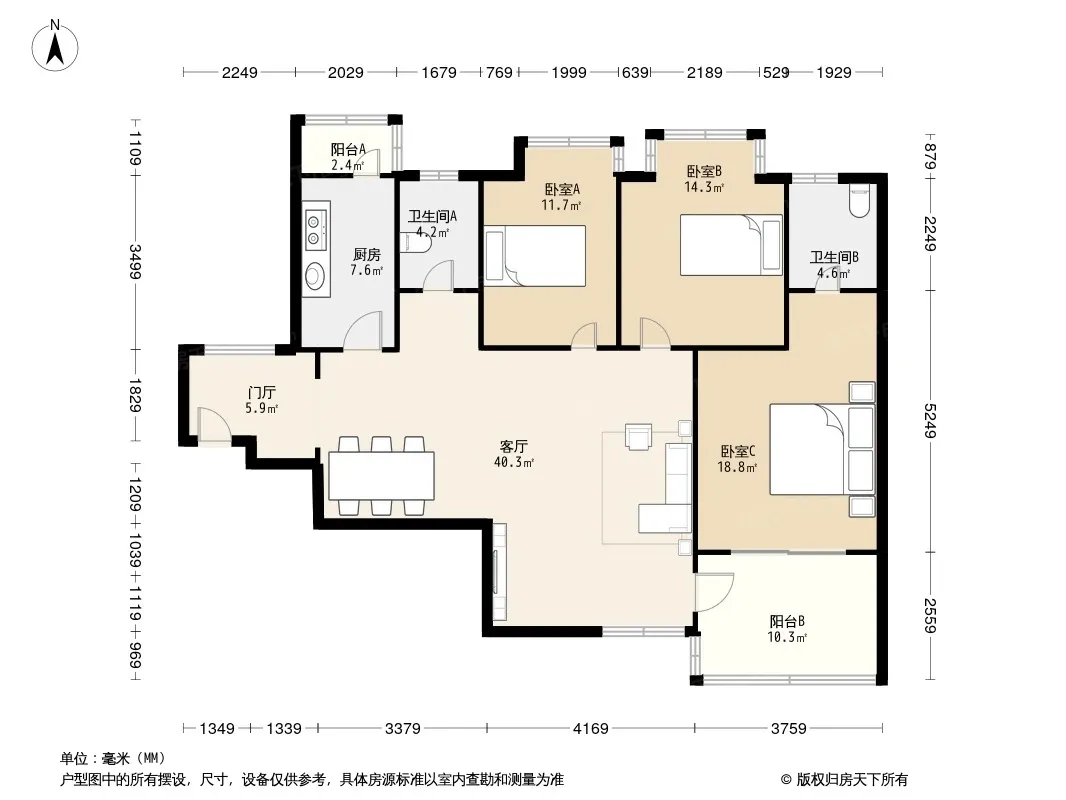 户型齐全,主打独立衣帽间,明卫,明厨,客厅朝南三居