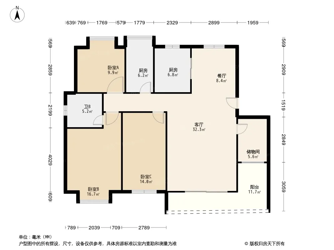 户型齐全,主打独立衣帽间,明卫,明厨,客厅朝南三居