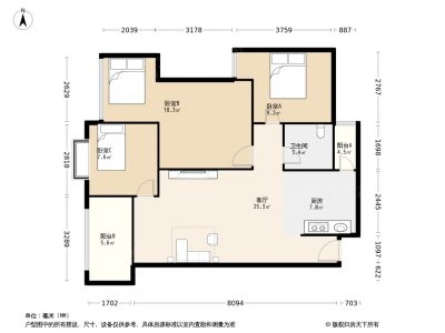 上行汇锦 3室1厅 东
