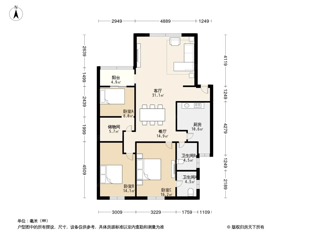 户型齐全,主打户型方正,明厨,双阳台,主卧朝南三居