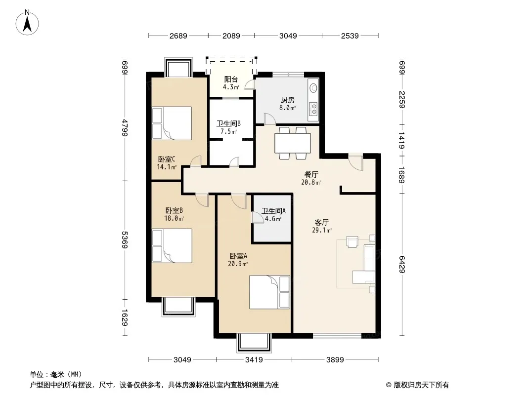 户型齐全,主打户型方正,明厨,双阳台,主卧朝南三居
