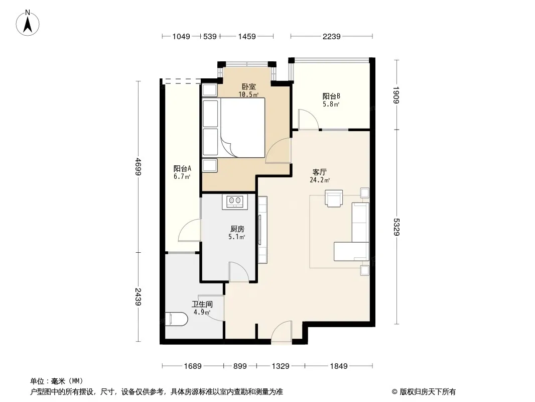 户型齐全,主打双阳台,主卧朝南一居