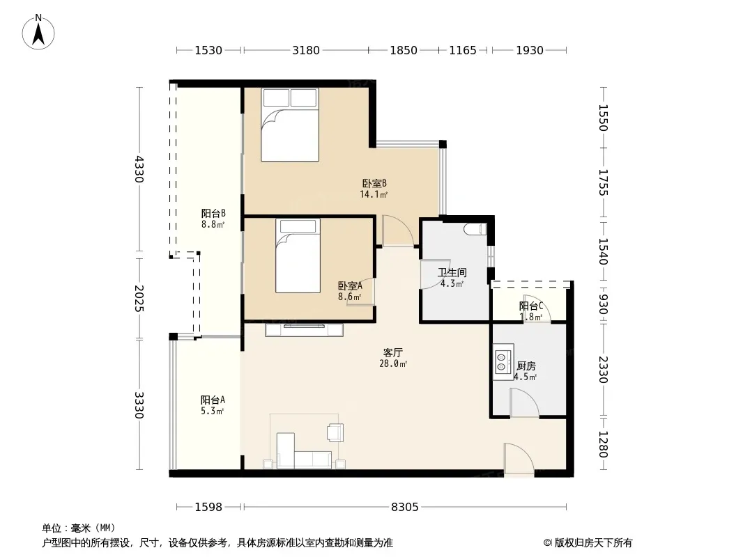 *获取完整户型报告,同时会有免费语音讲解服务