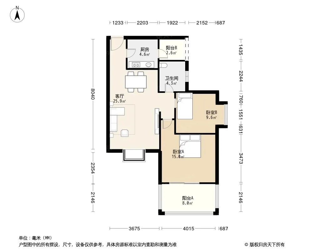 户型齐全,主打户型方正,双阳台,主卧朝南一居