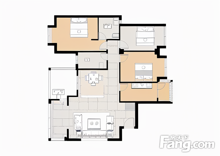 户型齐全,主打明卫,明厨,客厅朝南,全明格局三居