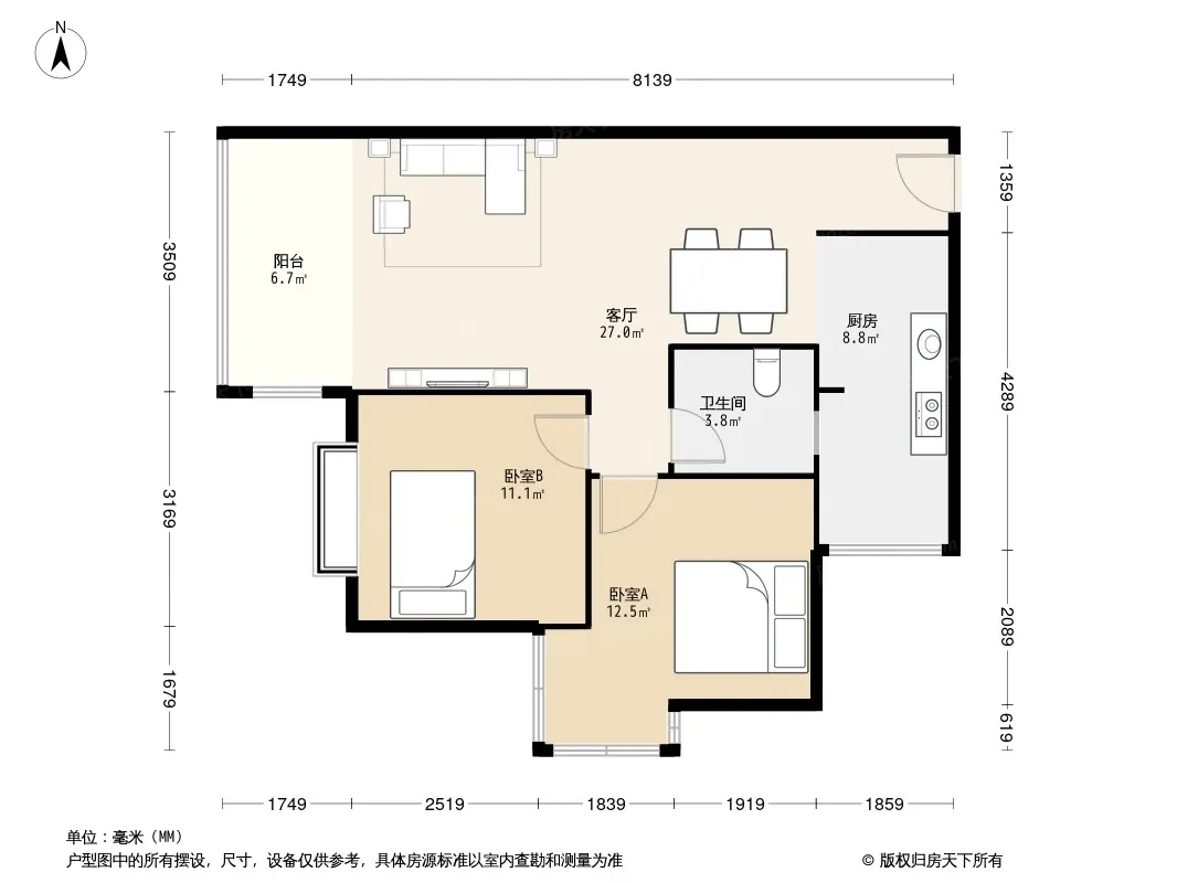 户型齐全,主打明厨,主卧朝南二居
