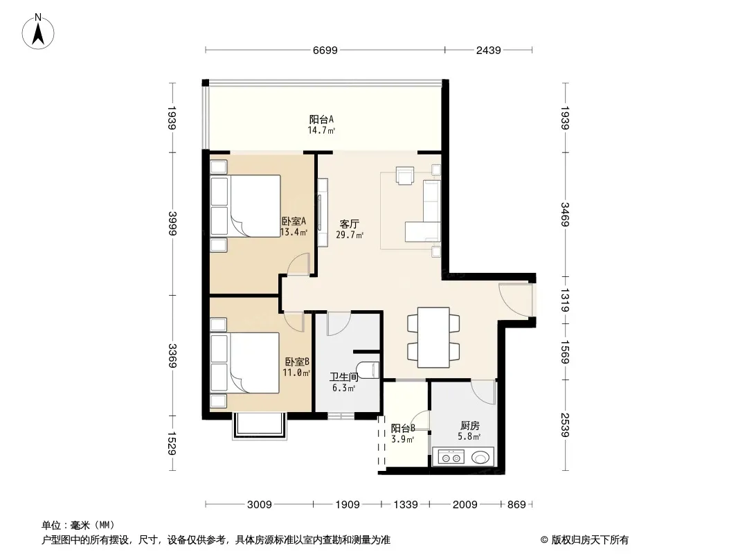 户型齐全,主打户型方正,客厅朝南,双阳台,主卧朝南二居