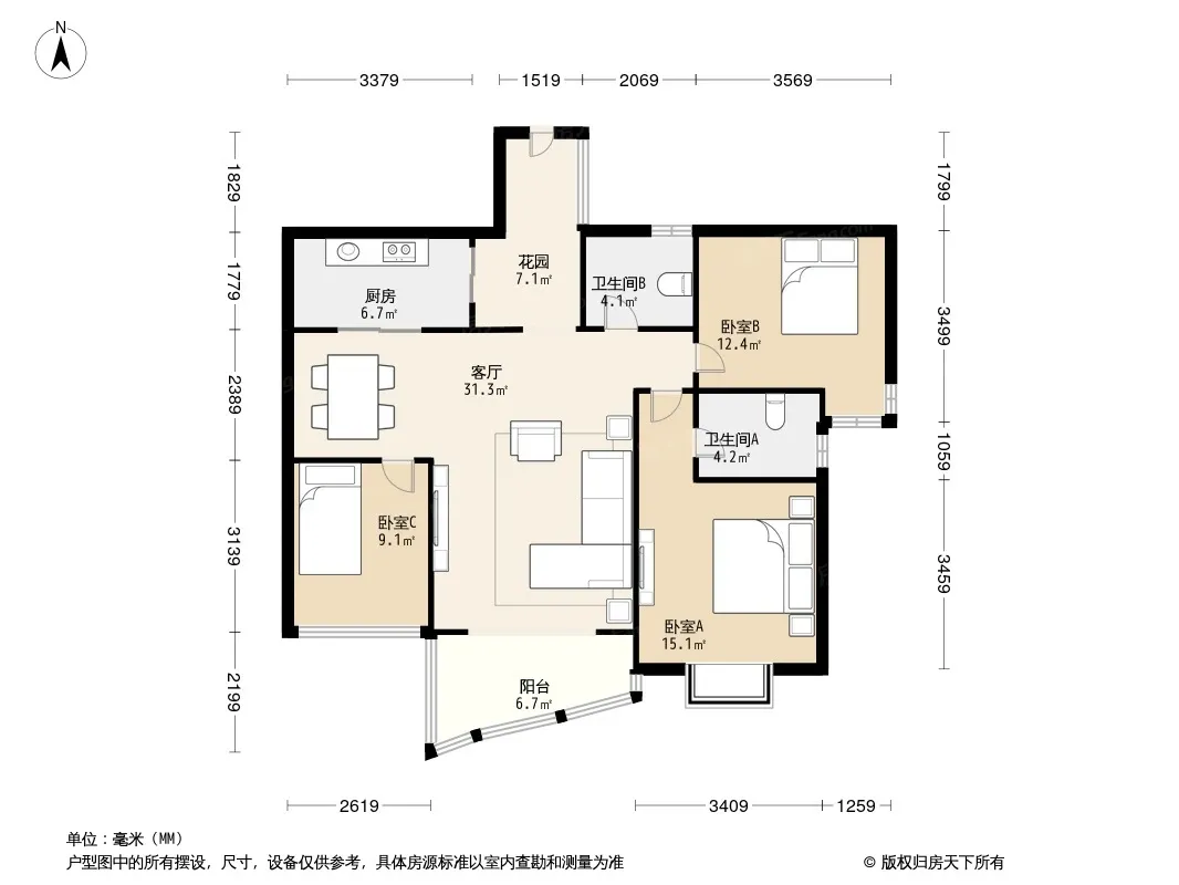 户型齐全,主打户型方正,明卫,独立衣帽间三居