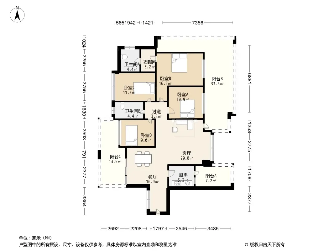 户型齐全,主打明卫,独立衣帽间,双卧朝南三居