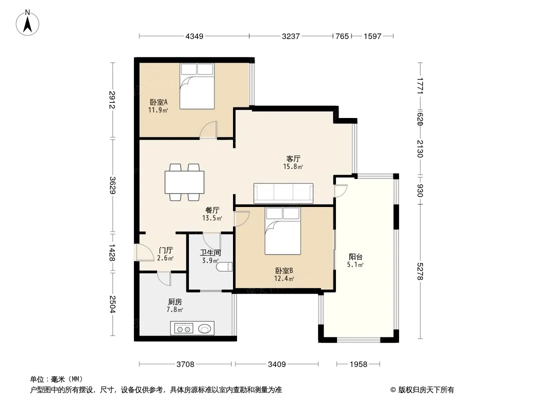 户型齐全,主打明卫,独立衣帽间,双卧朝南三居