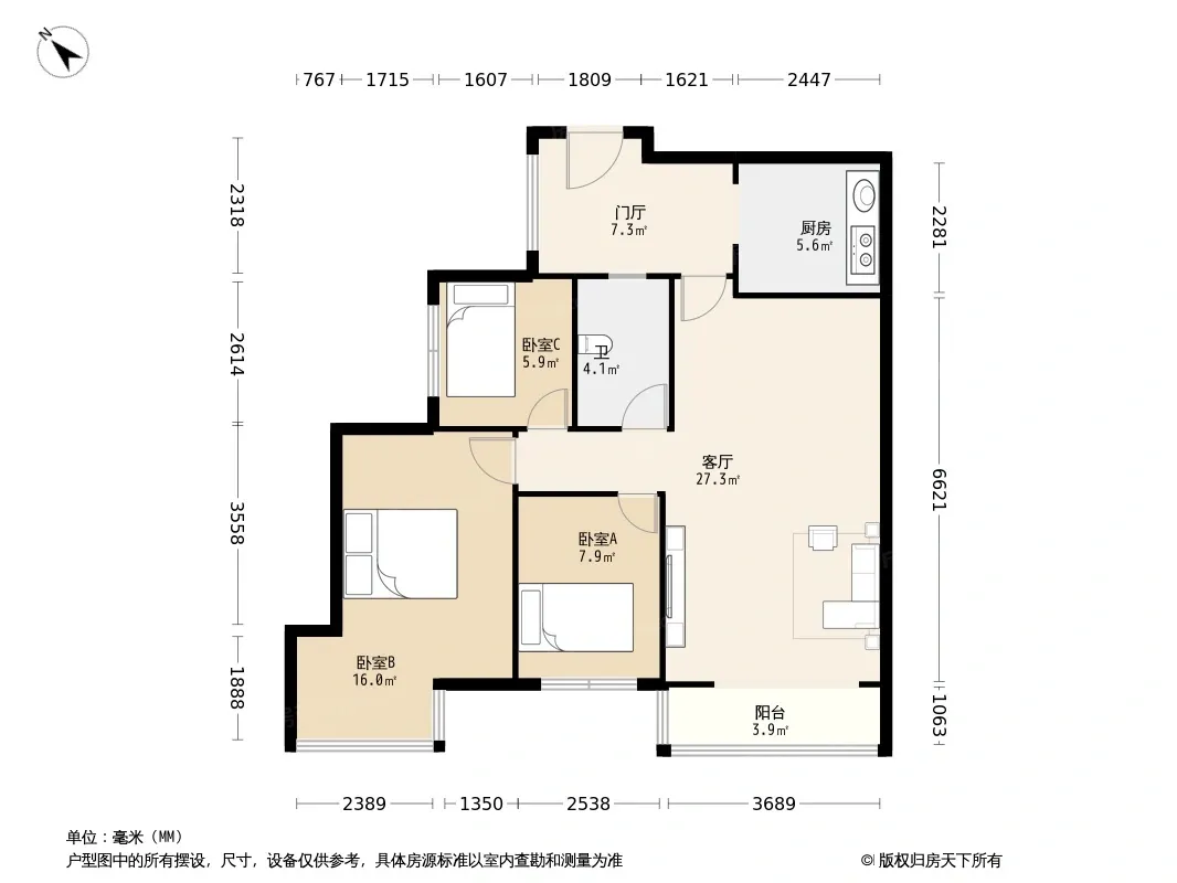 户型齐全,主打户型方正,明卫,客厅朝南二居