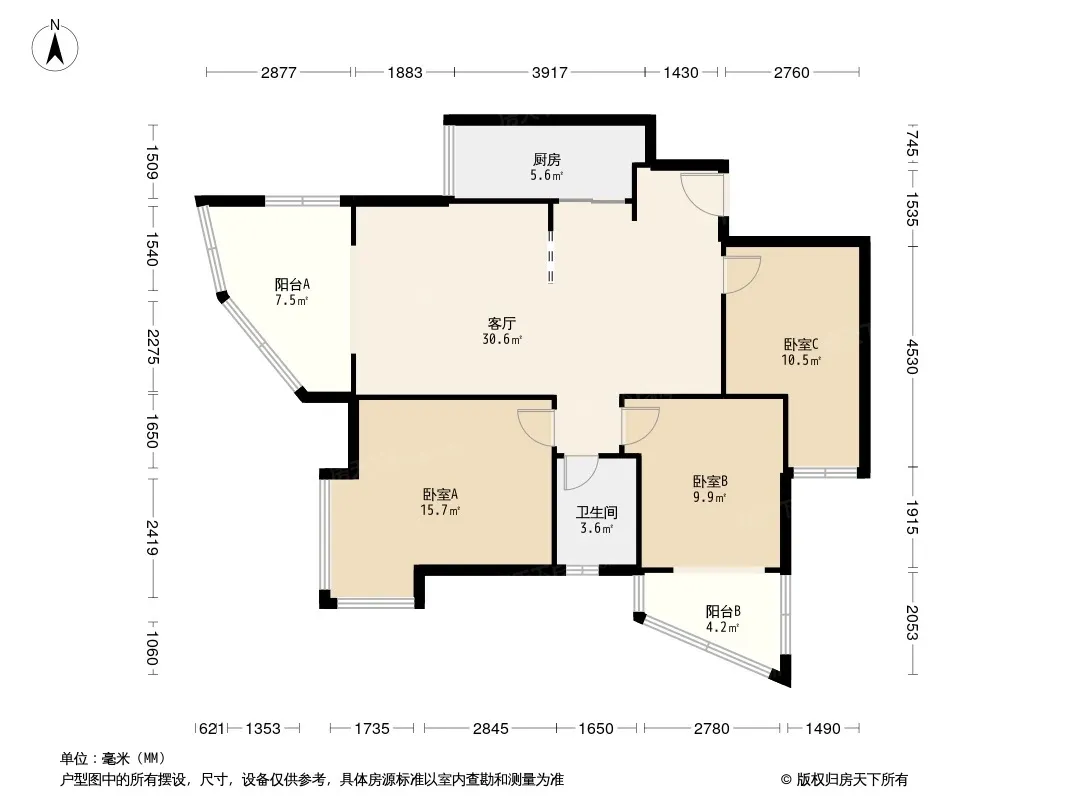 户型齐全,主打户型方正,明卫三居