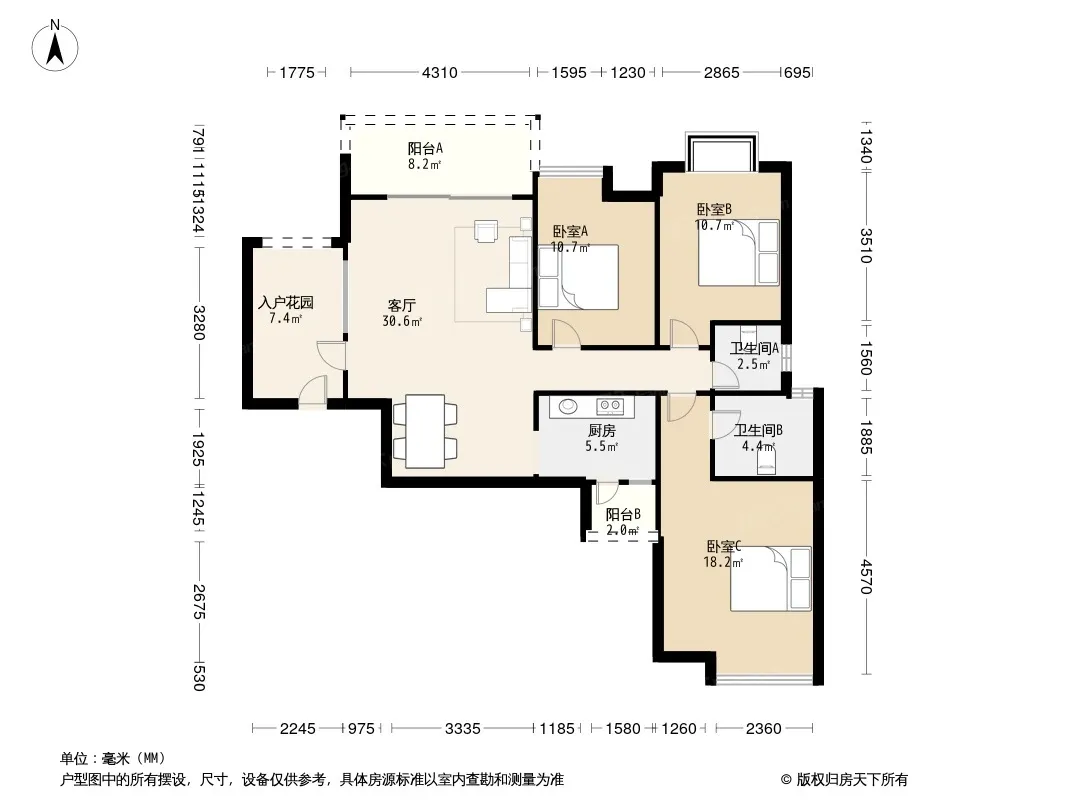 户型齐全,主打户型方正,明卫三居