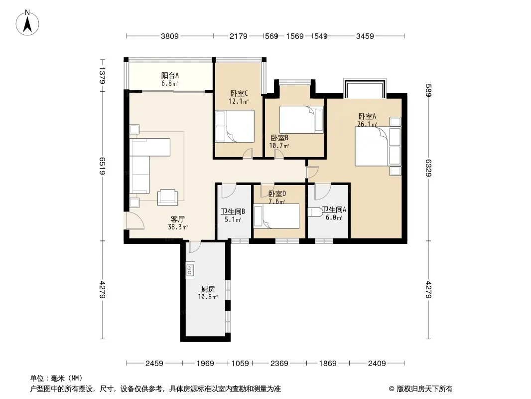 领馆区1号 4室2厅 东北