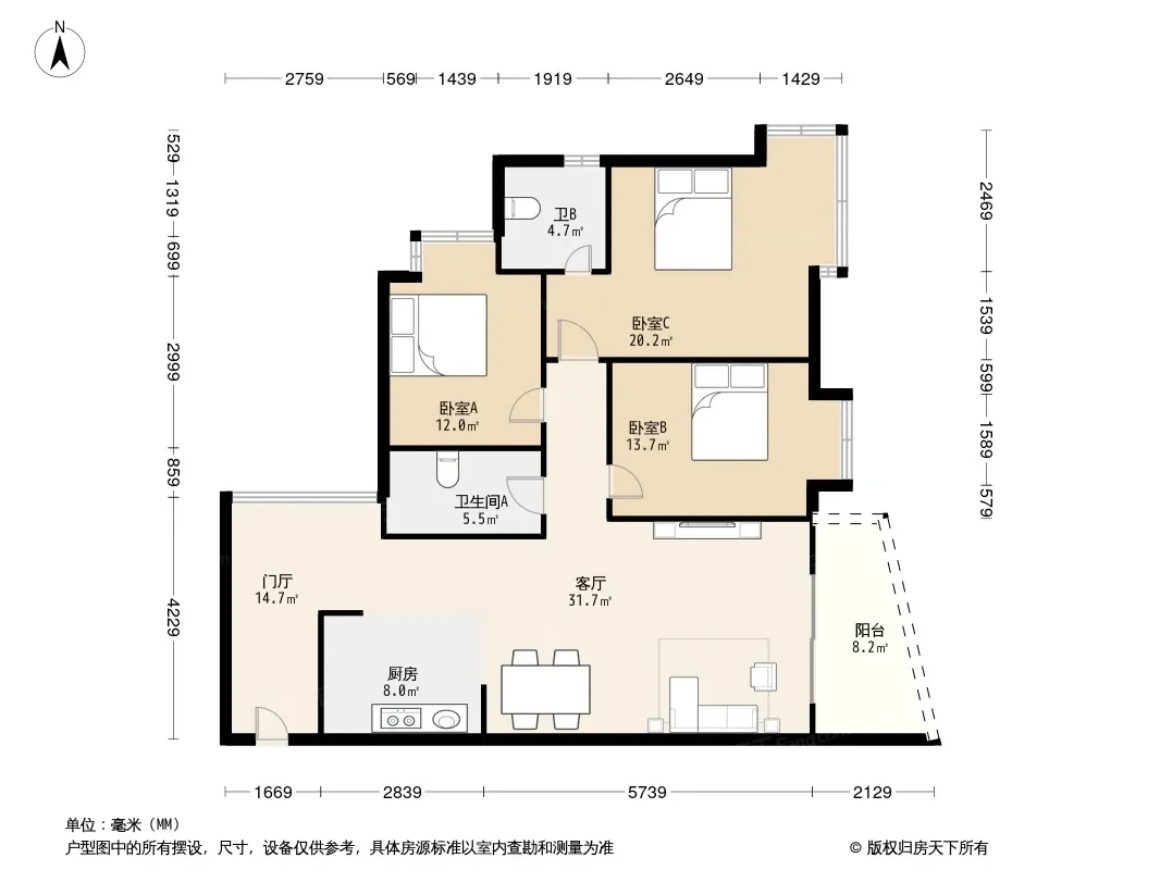 户型齐全,主打明卫,双阳台,主卧朝南三居