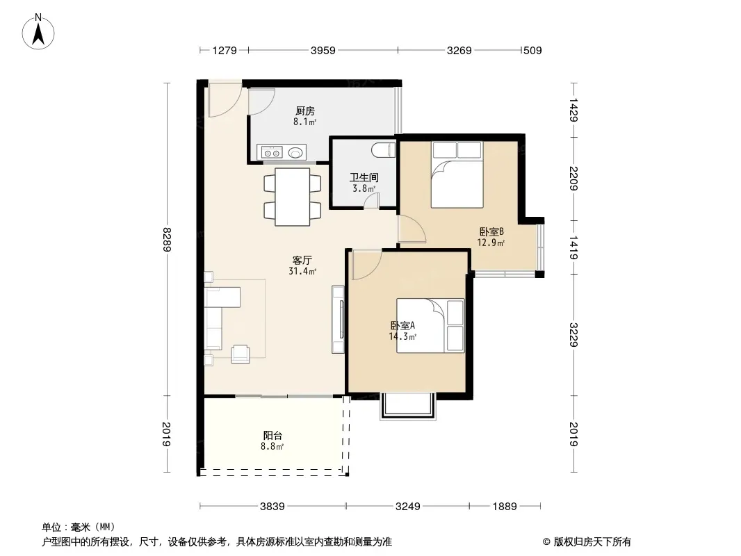 户型齐全,主打客厅朝南,双阳台二居