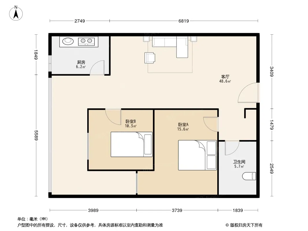 成南领寓 2室2厅 南