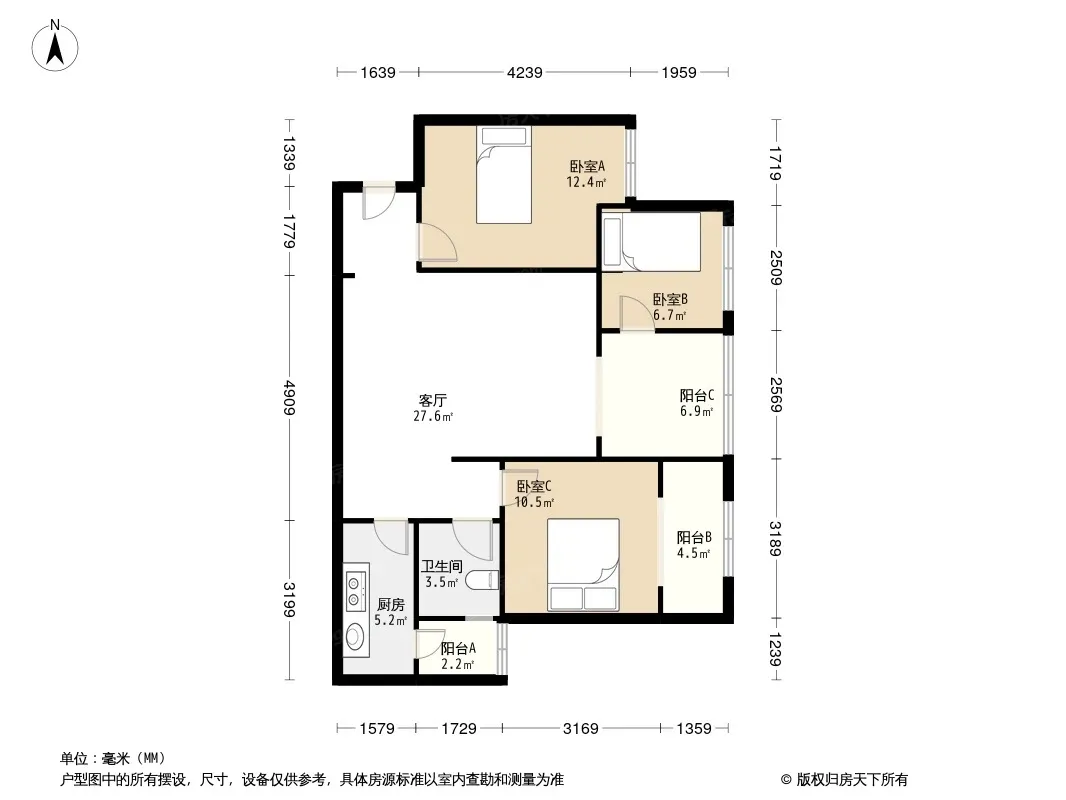 户型齐全,主打明卫,双阳台三居