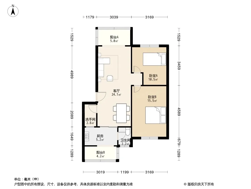 户型齐全,主打户型方正,明卫,明厨,客厅朝南,主卧朝南二居