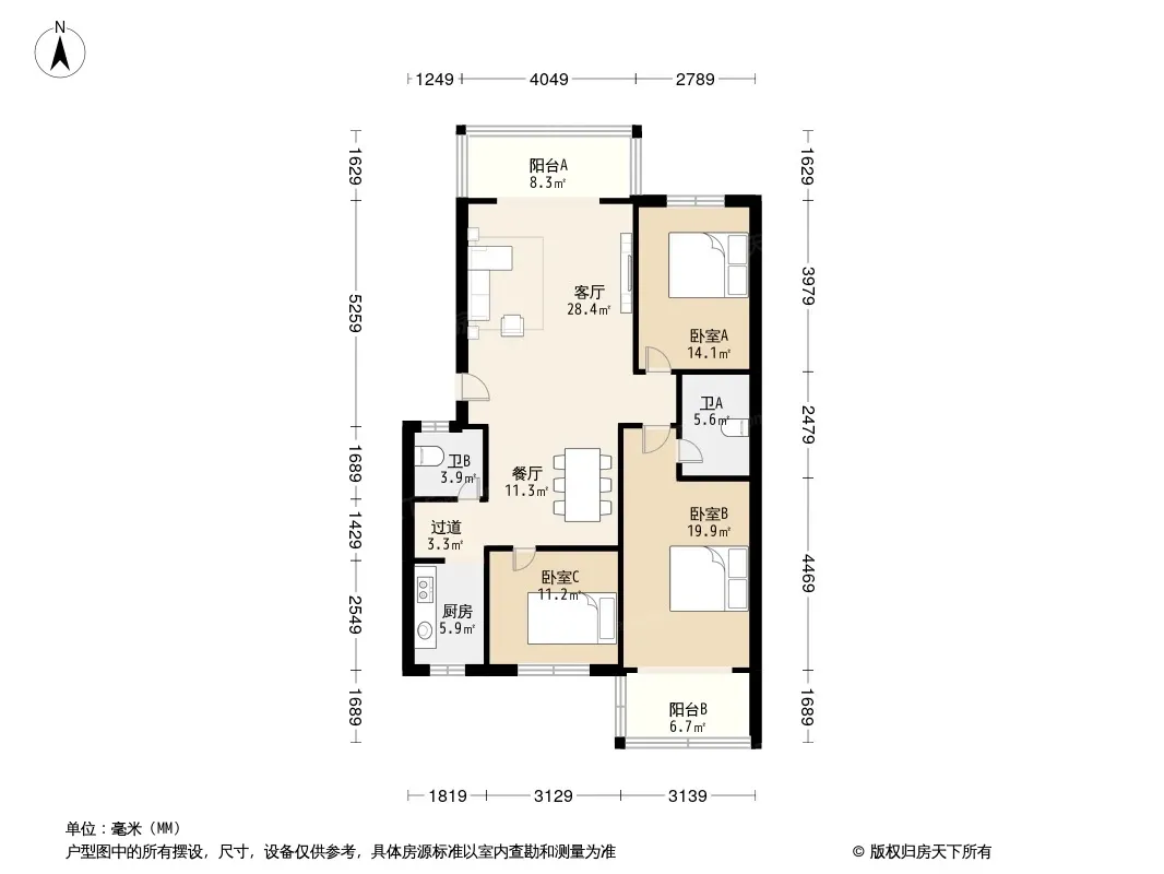 户型齐全,主打明厨,明卫,客厅朝南,全明格局,主卧朝南三居