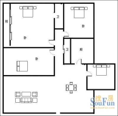 户型齐全,主打明卫,明厨,客厅朝南三居
