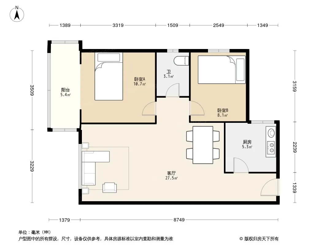 户型齐全,主打户型方正,明厨,主卧朝南二居