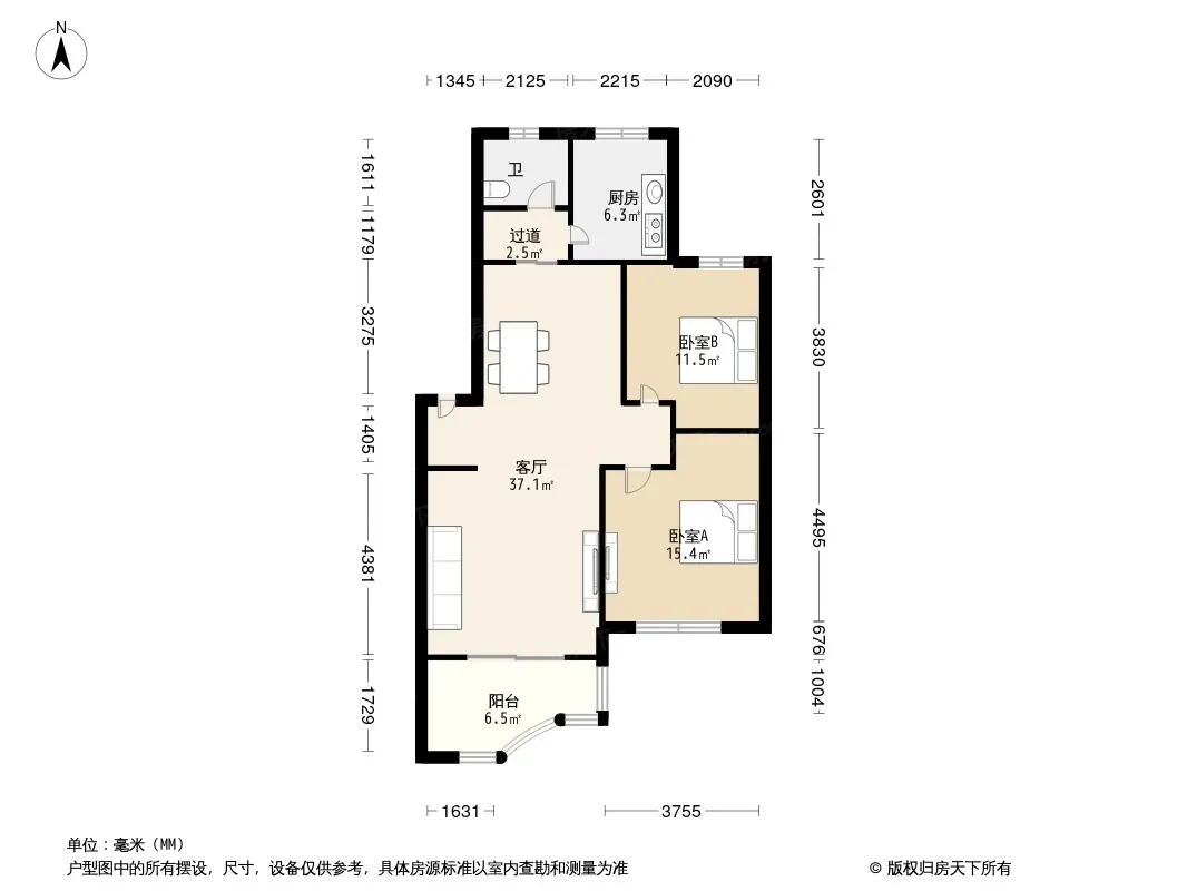 户型齐全,主打明厨,客厅朝南二居