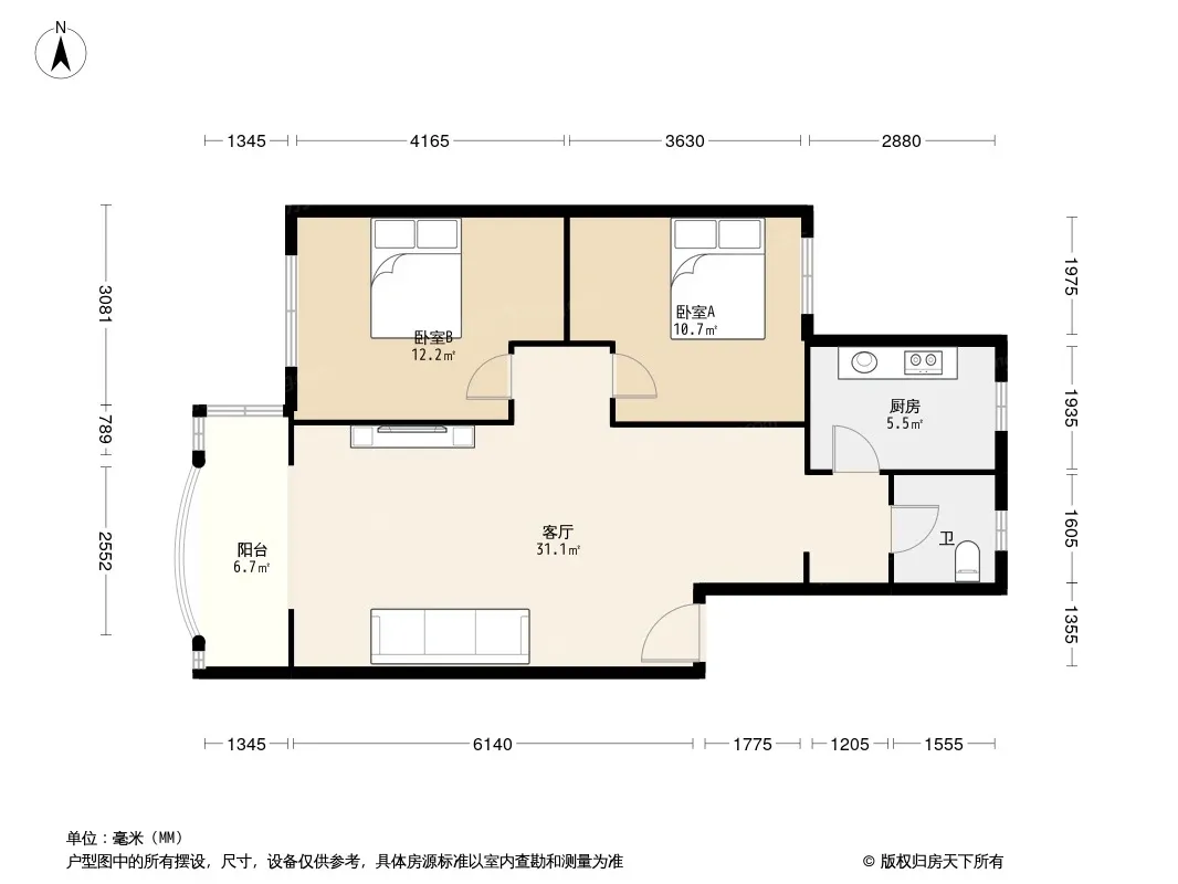 户型齐全,主打户型方正,明厨,明卫,客厅朝南,全明格局二居