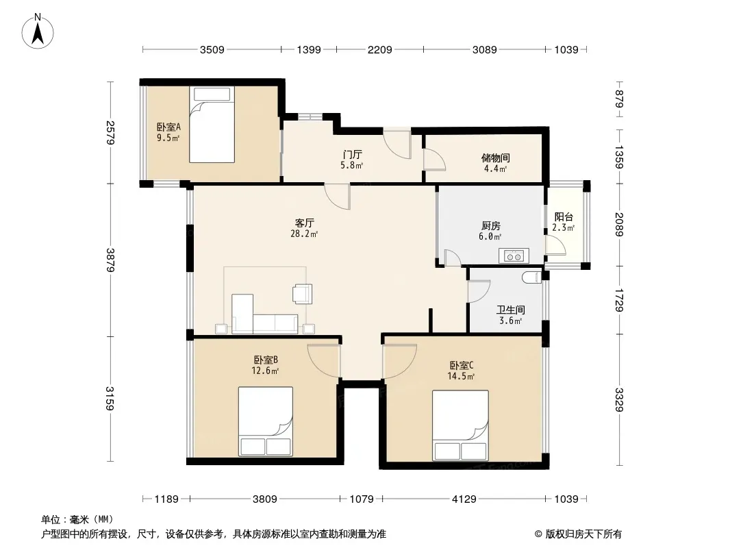 户型齐全,主打户型方正,客厅朝南,主卧朝南三居