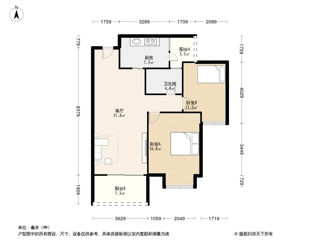 户型齐全,主打户型方正,明卫,客厅朝南,双阳台三居