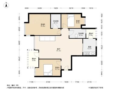 领馆逸品3室1厅东西