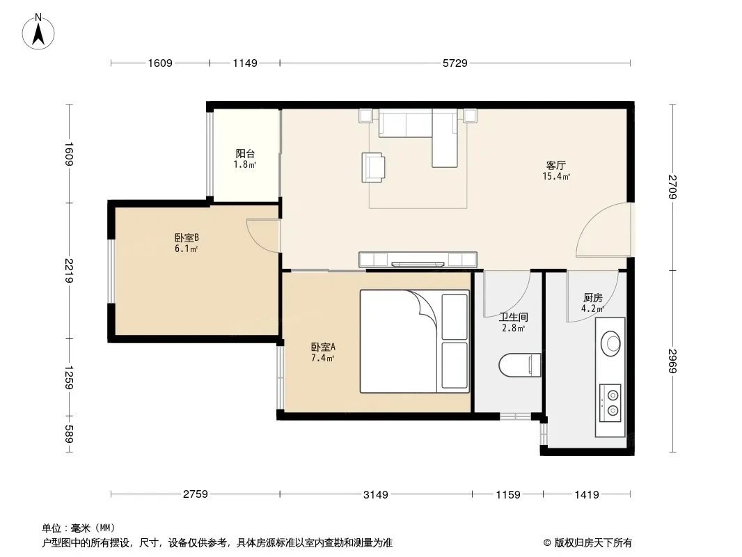 合能耀之城 2室1厅 西