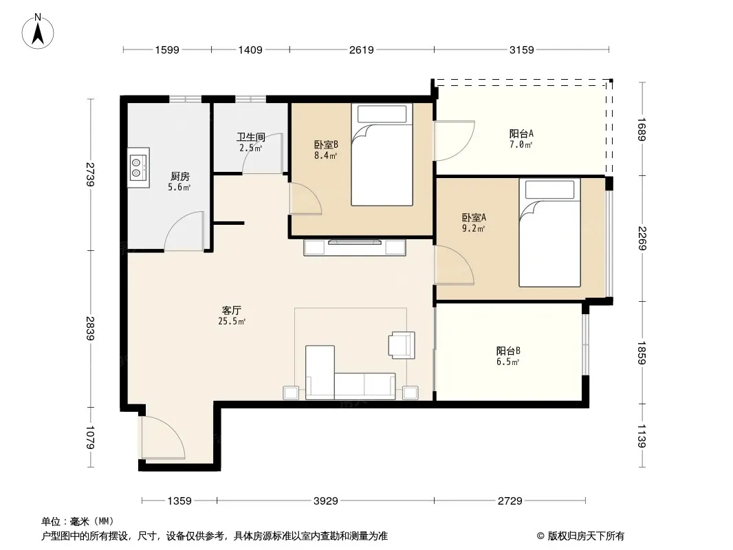 合能耀之城 2室1厅 南