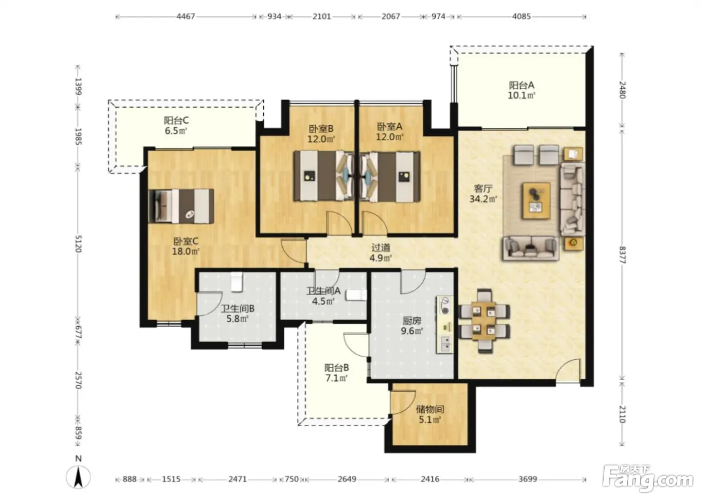 户型齐全,主打户型方正,独立衣帽间,明卫,双阳台三居