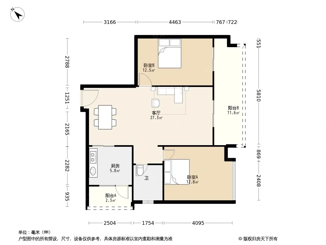 户型齐全,主打明卫,客厅朝南,双阳台三居