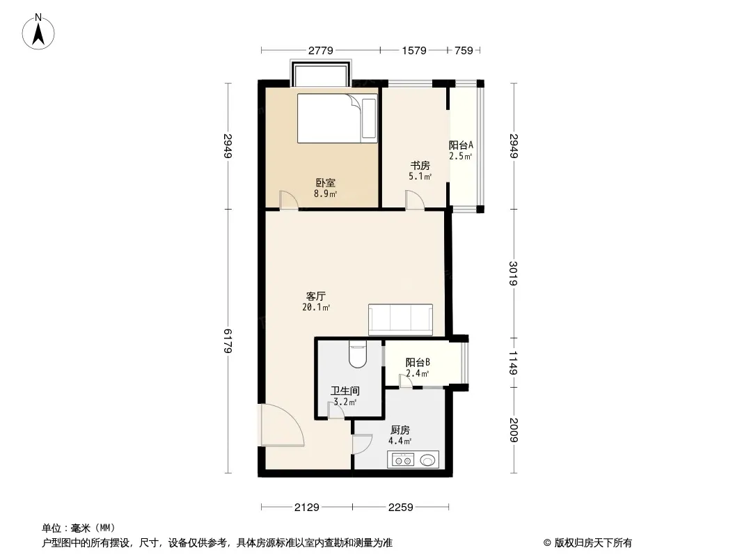 户型齐全,主打户型方正,客厅朝南,双阳台一居