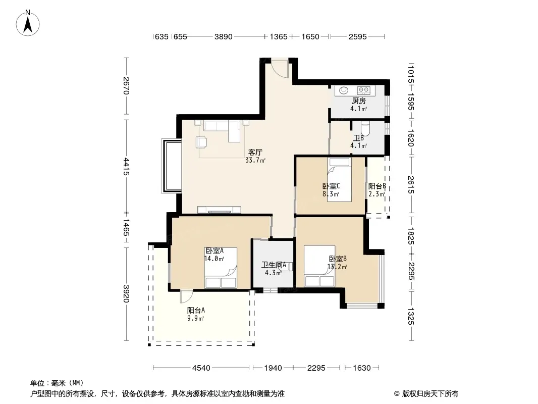 户型齐全,主打户型方正,明卫,明厨,客厅朝南三居