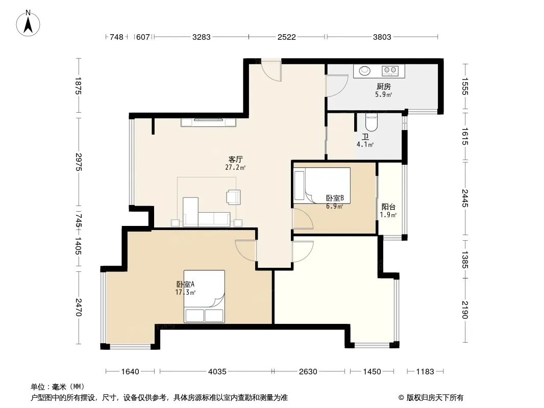 户型齐全,主打户型方正,明卫,明厨,客厅朝南三居